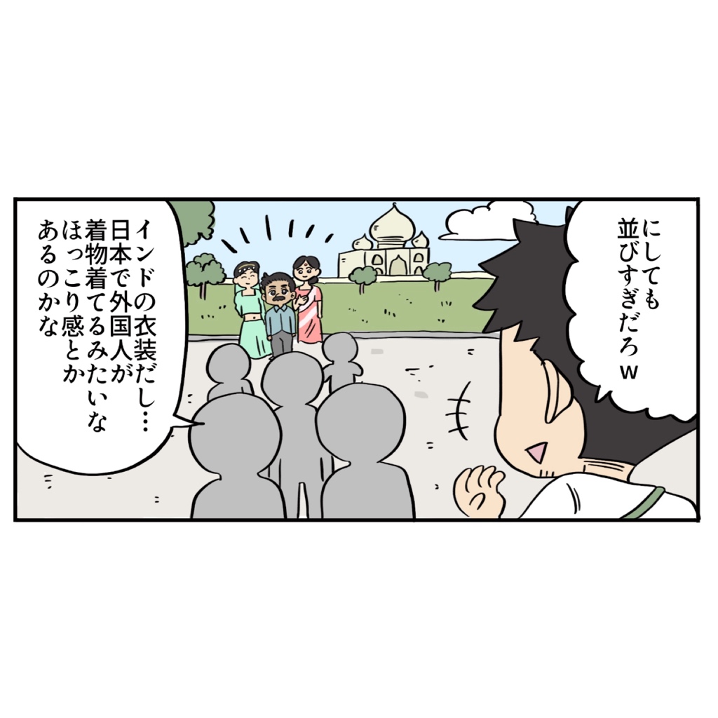 10人ぐらい並んでてもはや撮影会みたいになってる平和空間を見て、ひとりで「ふふ…」「行列になったらどうしようねぇ…」と思いながらタージマハルを闊歩した思い出です。